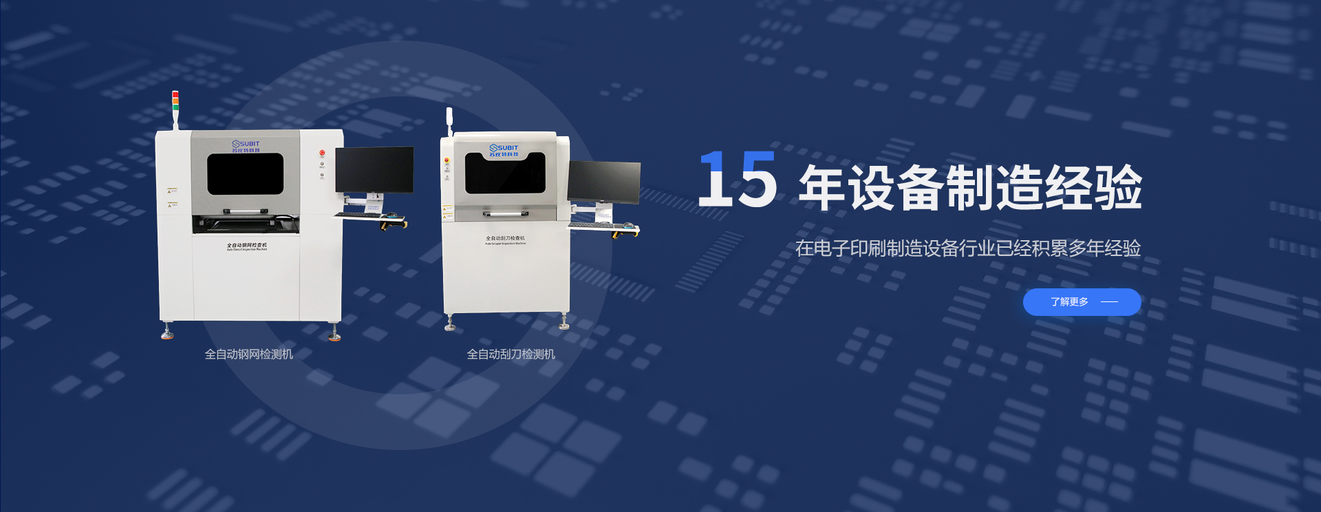 我们“SUBIT科技”成立于2014年,是电子印刷相关机械和化工设备的专业制造商和供应商,我们在电子制造领域积累了数十年的经验,致力于提供优秀的印刷周边设备,化工物料混合/搅拌设备,电子工业部分检测设备和非标准自动化设备。